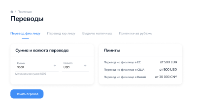 Вам необходимо выбрать валюту, в которой будет выполнен перевод, и задать сумму перевода в выбранной валюте